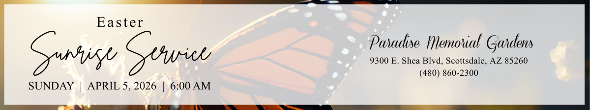 We invite you and your family to join us for a special Easter Sunrise Service at Paradise Memorial Gardens—a cherished annual tradition in a serene lakeside setting where we welcome the dawn of Easter together.
