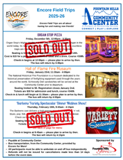 Seating limited to 50. Registration closes January 2nd. Tickets are $30 for admission and lunch, course #3409. Check-in & lunch will begin at 11:30am— please plan to arrive by then. The bus will return by 4:00pm